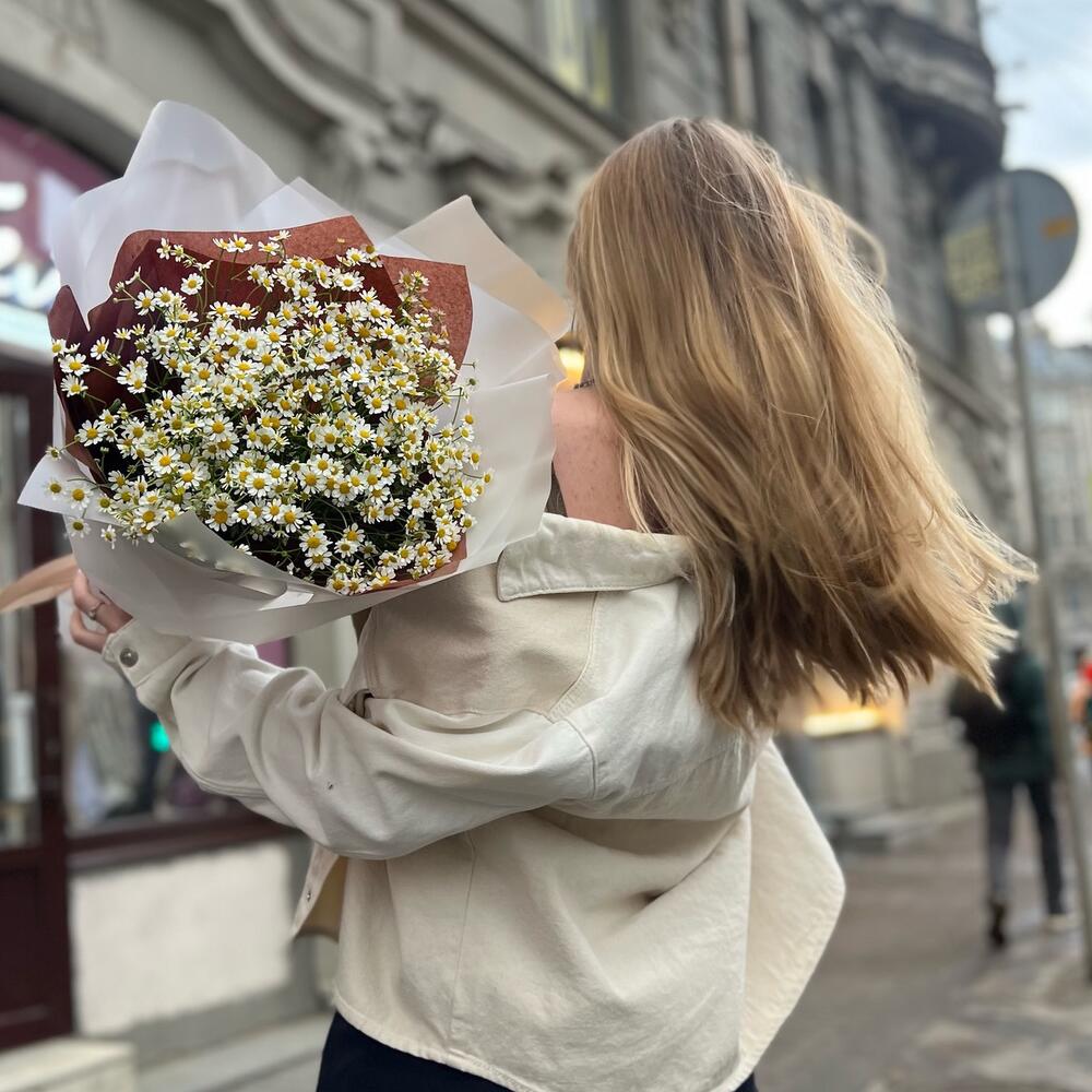 Лента атласная – 1 шт.Тишью – 2 шт.Матрикария – 15 шт.Пленка матовая – 2 шт.