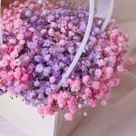 “Сиреневый туман” – композиция из гипсофилы в шляпной коробке