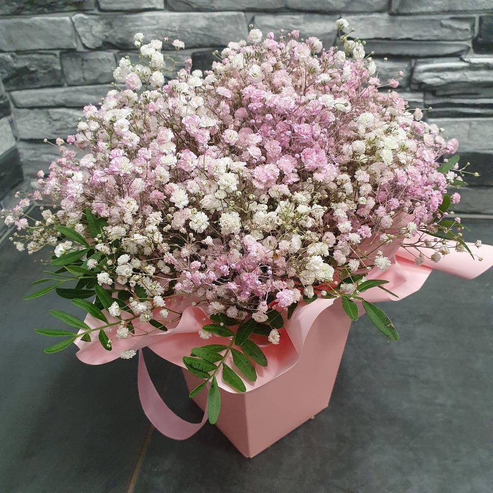 Гипсофила – 7 шт.Зелень – 5 шт.Оазис флористический – 1 шт.Коробка – 1 шт.