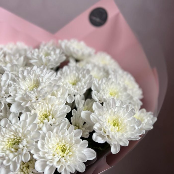 Кустовая хризантема – 5 шт.декоративная упаковка – 1 шт.Атласная лента – 1 шт.