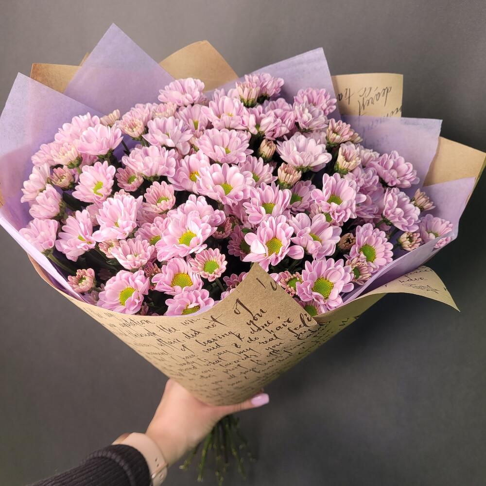 Нежные, сиреневые, цветочки Сантини поднимут настроение с первого взгляда, букет можно подарить на любой праздник или просто как знак внимания