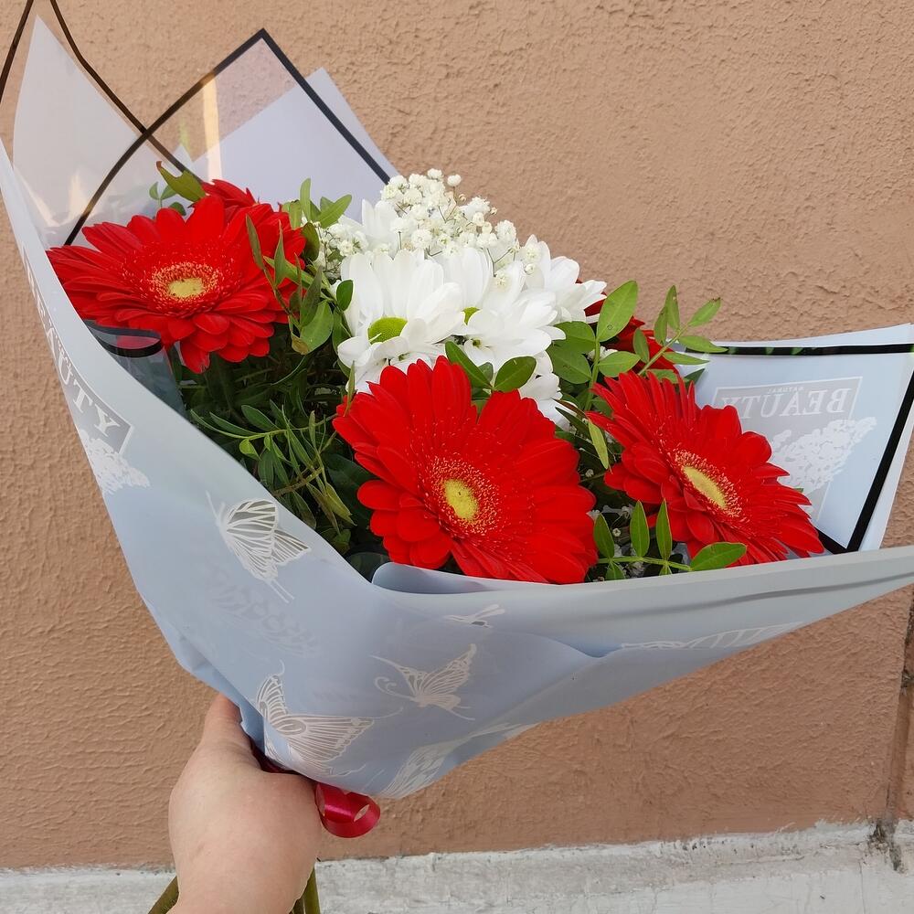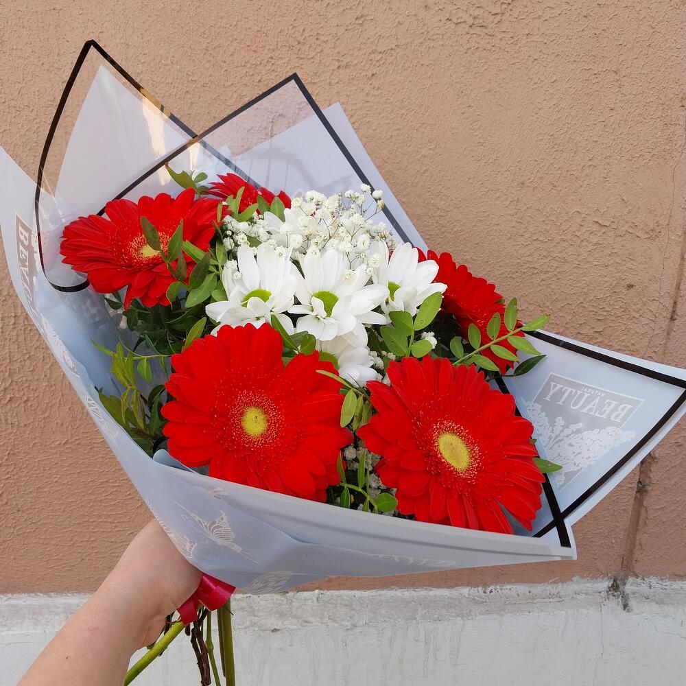 Категории: Герберы, Гипсофила, Хризантемы