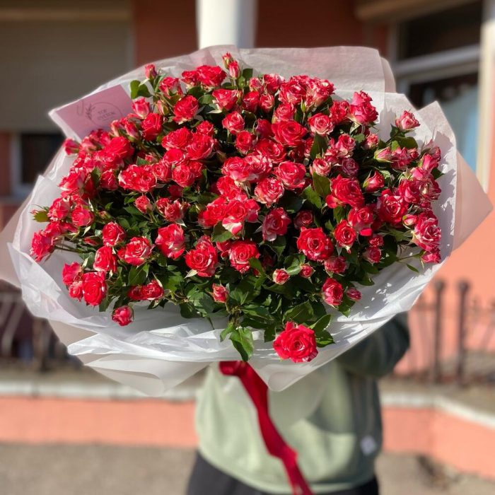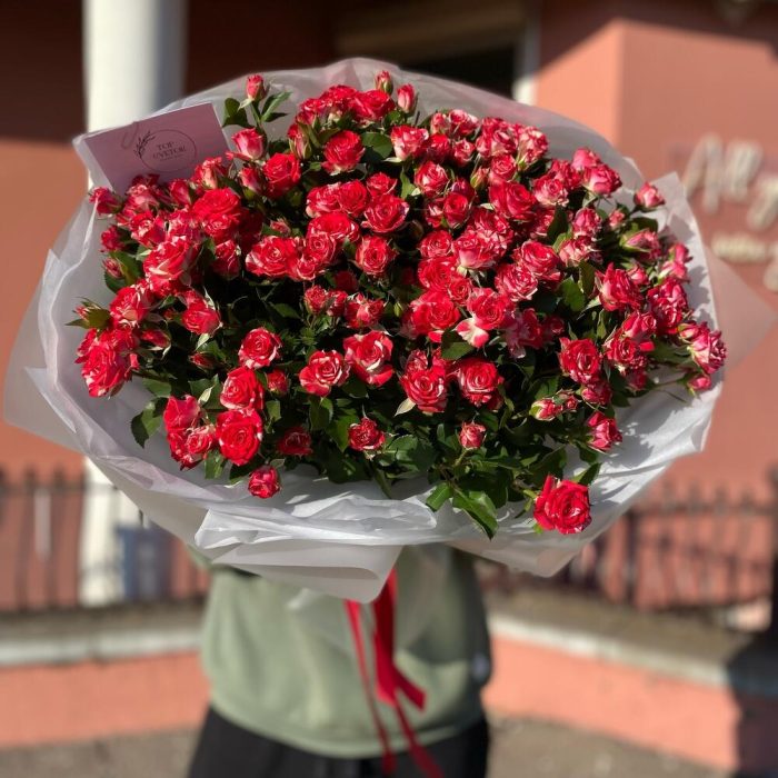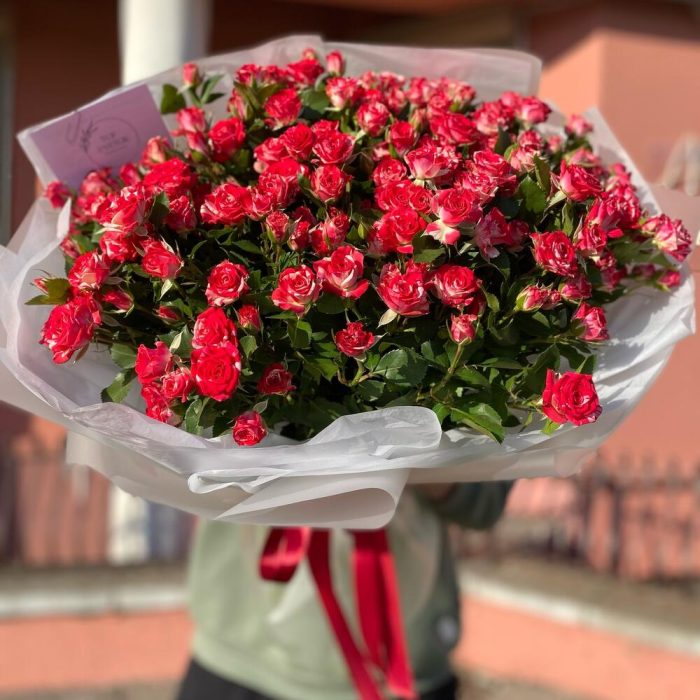 Кустовая роза – 25 шт. Тишью – 1 шт. Упаковка дизайнерская – 1 шт.