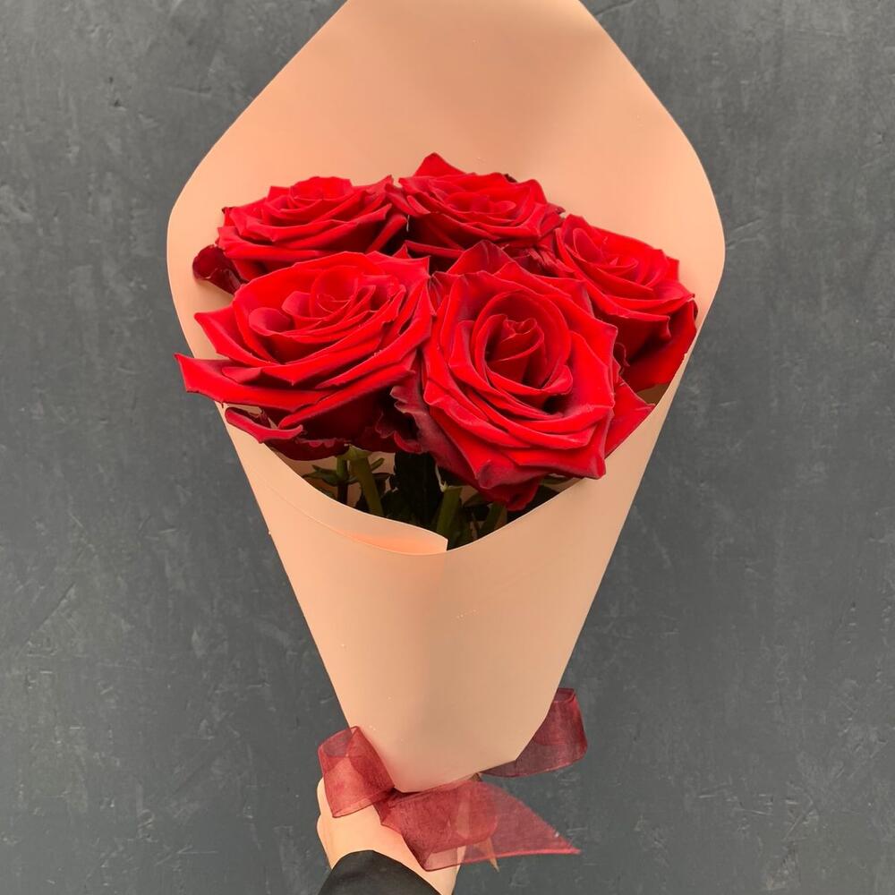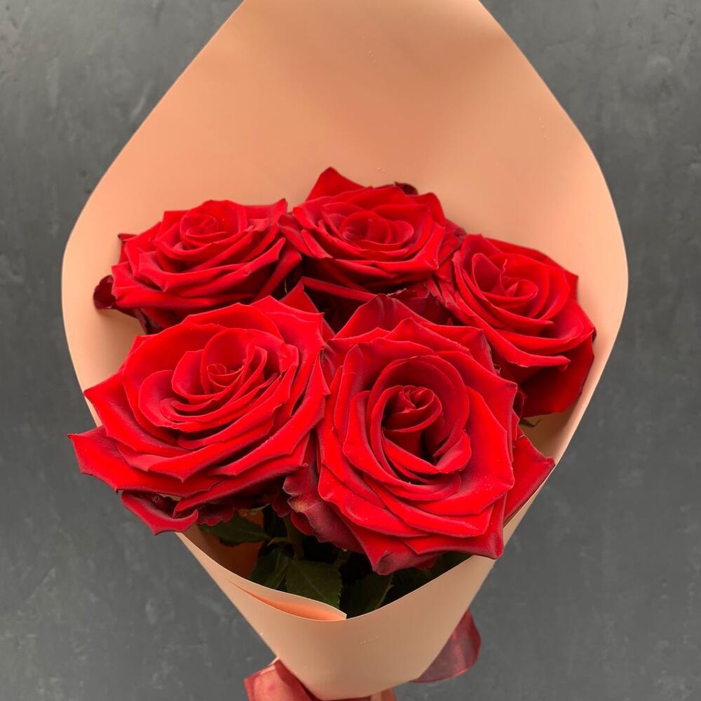 Роза – 5 шт.Упаковка – 1 шт.Лента – 1 шт.