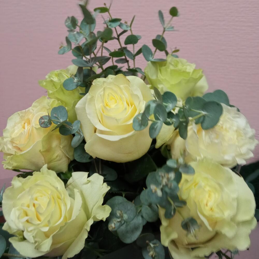 Букет из 7 Эквадорских роз с эвкалиптом