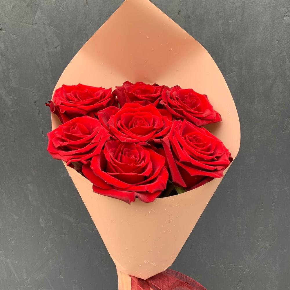 Роза – 7 шт.Упаковка – 1 шт.Лента – 1 шт.