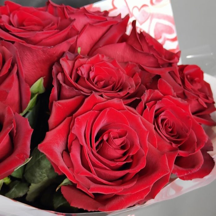 Лента атласная – 1 шт.Упаковка дизайнерская – 1 шт.Роза одноголовая эквадор – 9 шт.