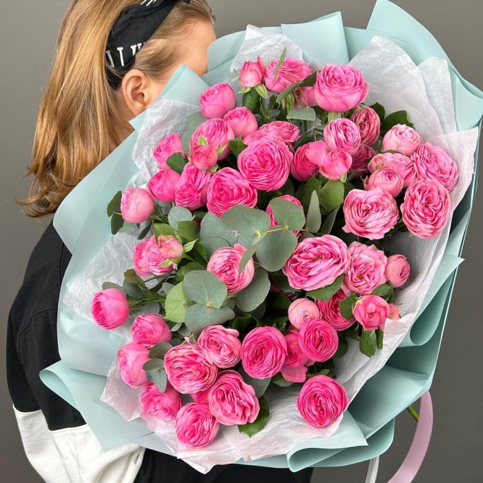 Букет из пионовидной розы и эвкалипт