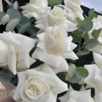 Букет молочных французских роз с пряным эвкалиптом
