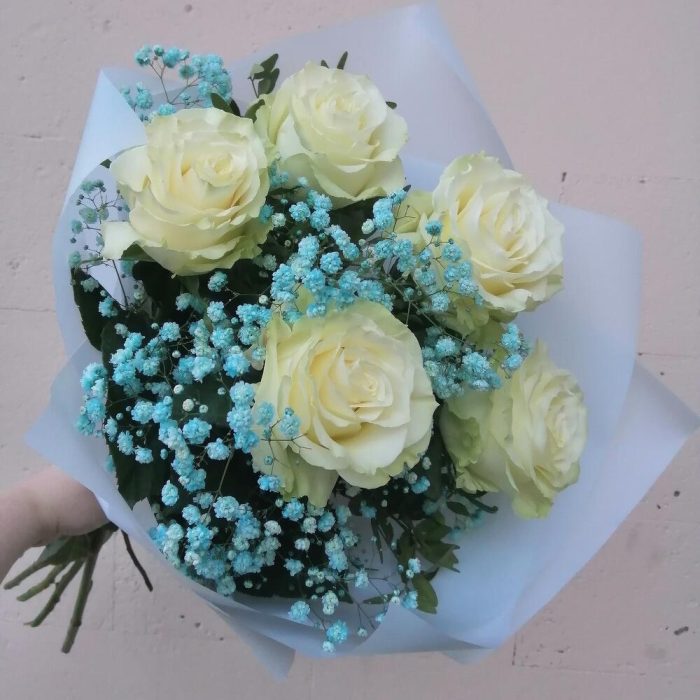 Букет с розами и гипсофилой