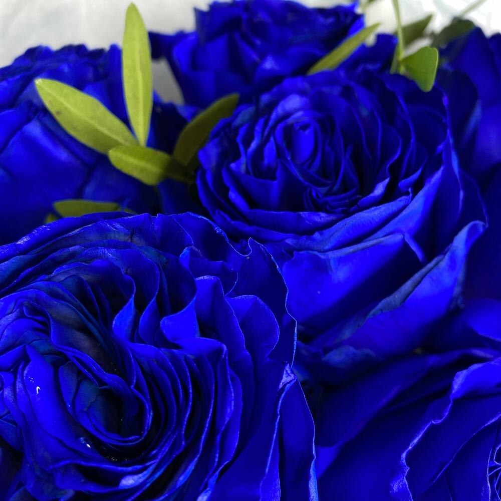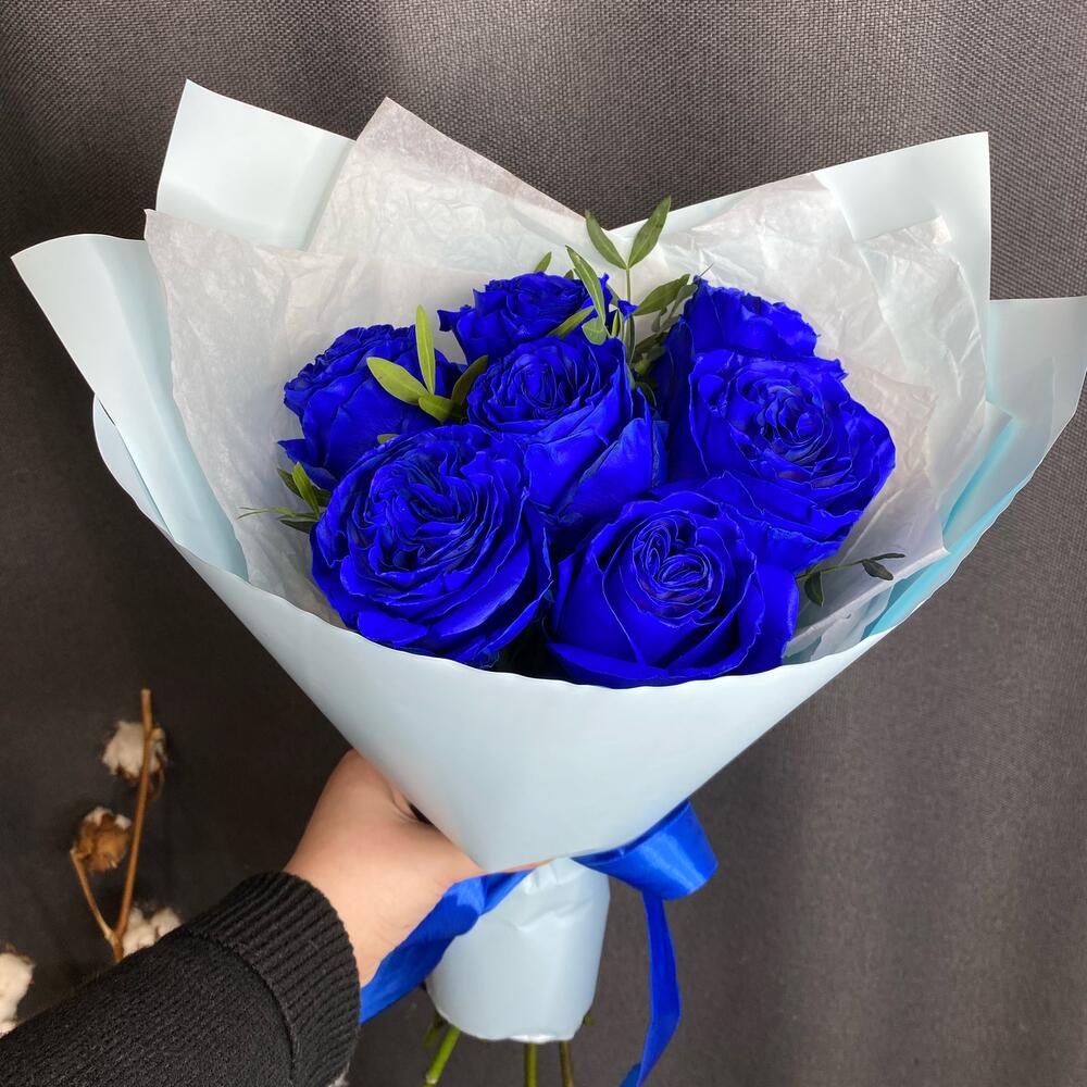 Лента атласная – 1 шт.Тишью – 1 шт.Фисташка – 2 шт.Синяя роза – 7 шт.Матовая упаковка – 1 шт.