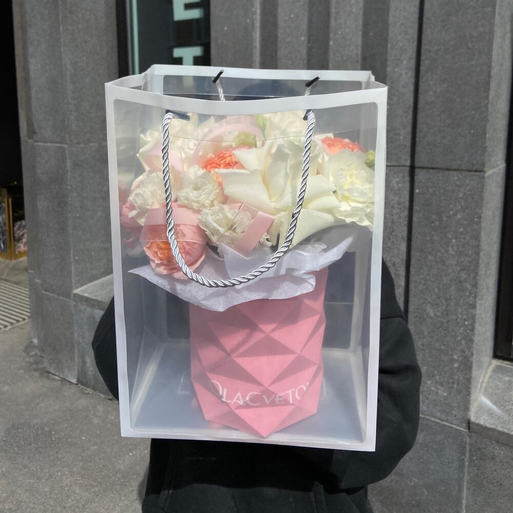 Розовая гипсофила в крафтовом пакете