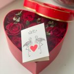 Коробка сердце – 1 шт.Фисташка пучок – 1 шт.Оазис флористический – 1 шт.Роза красная одноголовая – 13 шт.