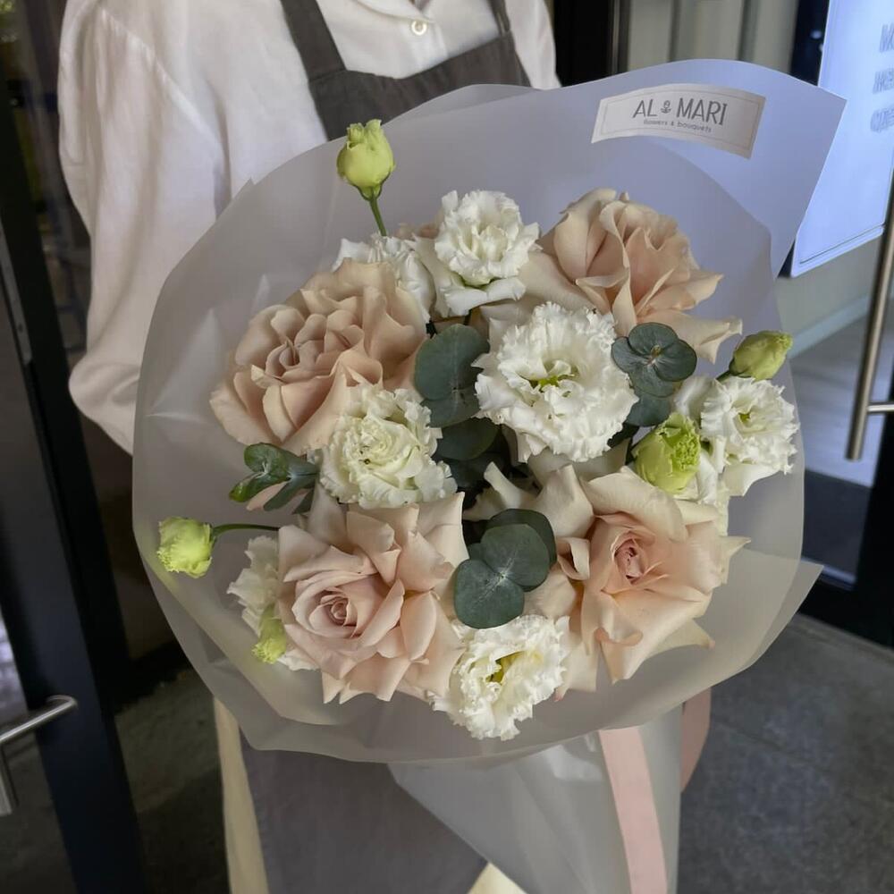 Кустовые розы, Лизиантусы, Розы, Сухоцвет