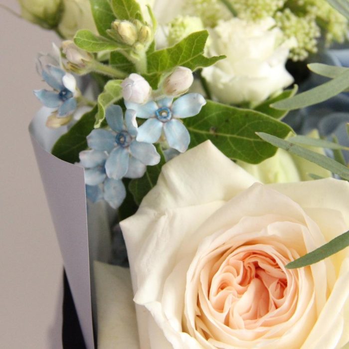 Амми – 2 шт.Анемон – 3 шт.Астра – 3 шт.Гортензия – 1 шт.Лизиантус – 2 шт.Эвкалипт – 3 шт.Упаковка – 2 шт.Лента атласная – 1 шт.Роза пионовидная – 3 шт.Твидия – 2 шт.флебодиум – 2 шт.