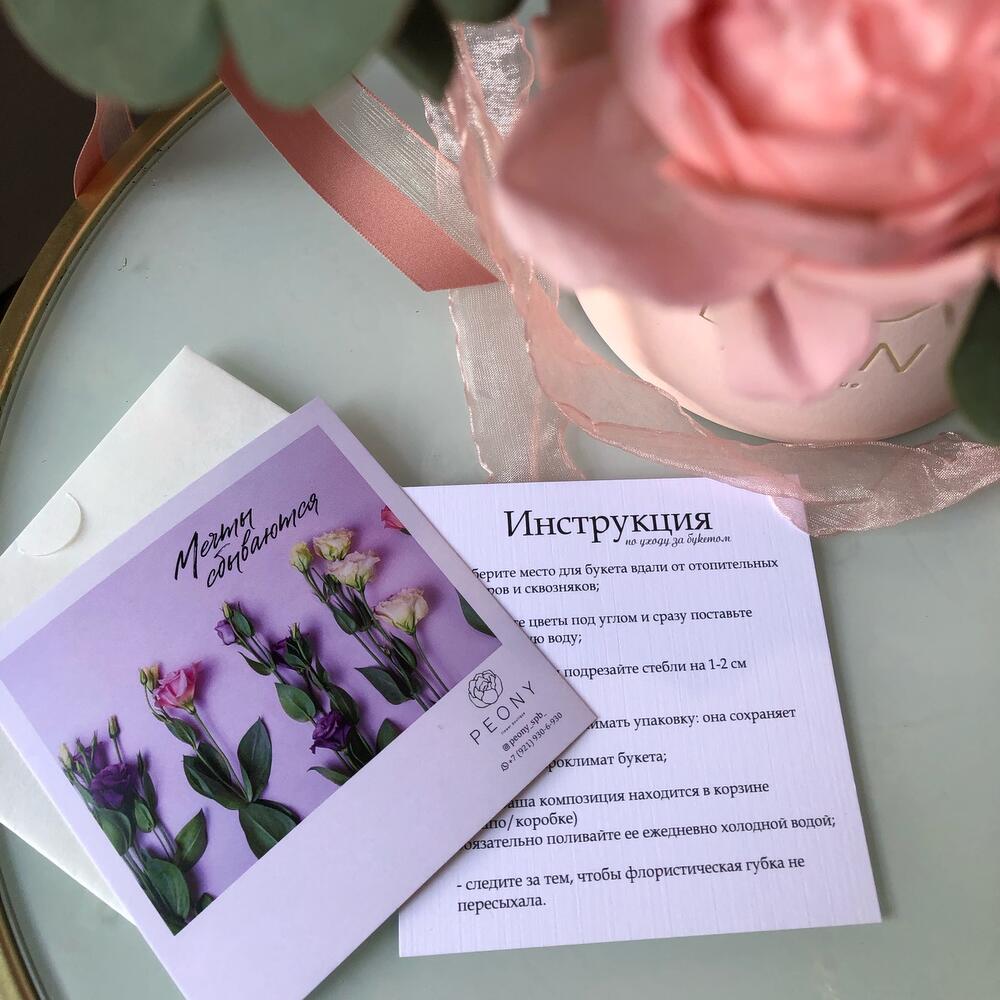 Пионовидные розы розово-персиковых оттенков с ароматным эвкалиптом Флористы студии Peony собрали данную композицию с огромным трепетом из самых свежих цветов Цветы в коробке – это удобно, так как для них не нужна ваза. Цветы находятся в специальной флористической губке, которую необходимо поливать раз в два дня В подарок к композиции прилагается открытка с вашими пожеланиями и инструкция по уходу за цветами.
