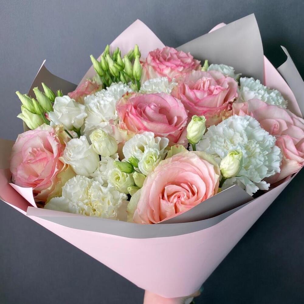 Категории: Гвоздики, Лизиантусы, Розы