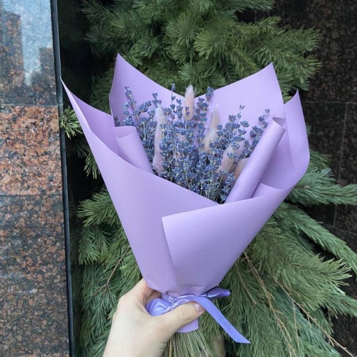 Упаковка – 1 шт.Лента атласная – 1 шт.Лаванда пучок – 1 шт.Лагурус (сухоцвет) – 10 шт.